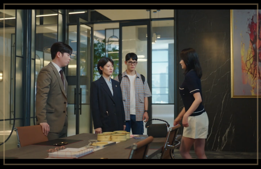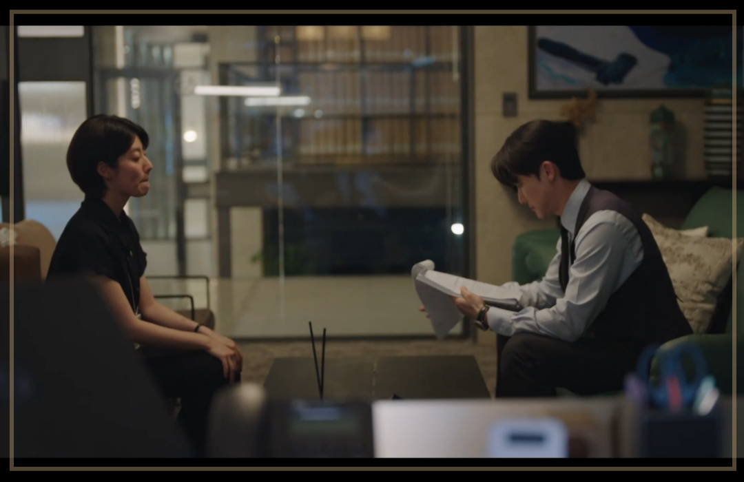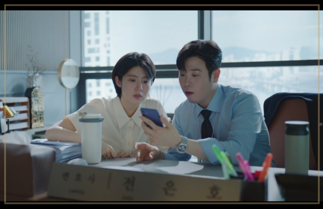 한유리는 동료 정우진(김준한 분)에게 조언을 구합니다. 정우진은 의뢰인 이승준의 상대방이 유부녀임을 알고 만났다는 증거들이 지나치게 완벽하게 준비된 점이 의심스럽다고 지적합니다.
