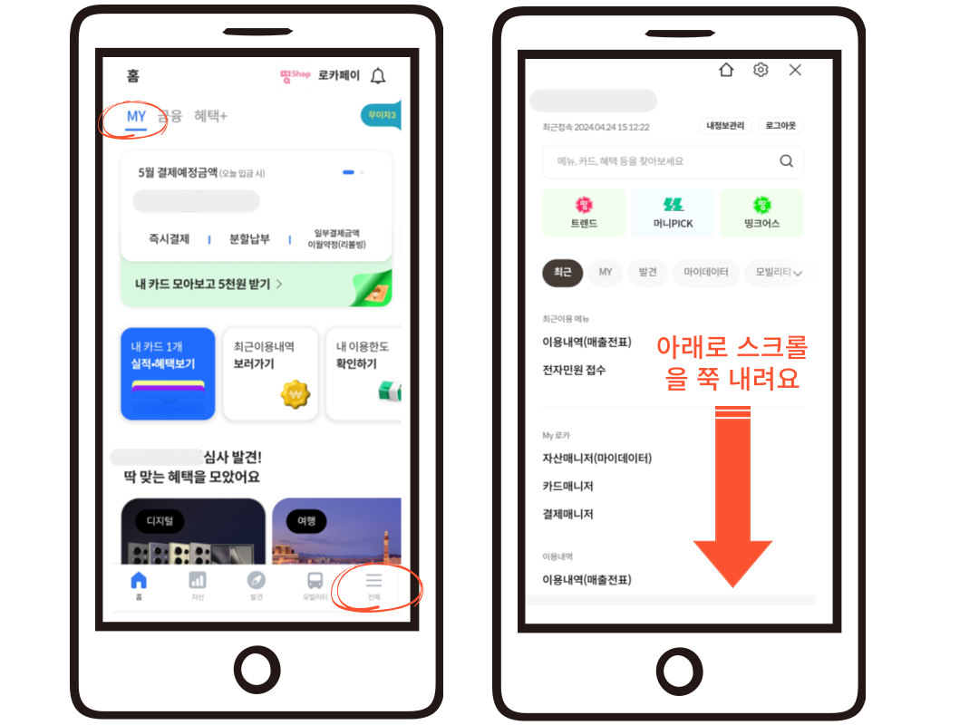 3. MY 메뉴들이 길게 나오로, 아래로 쭉 스크롤을 내려 봅니다.