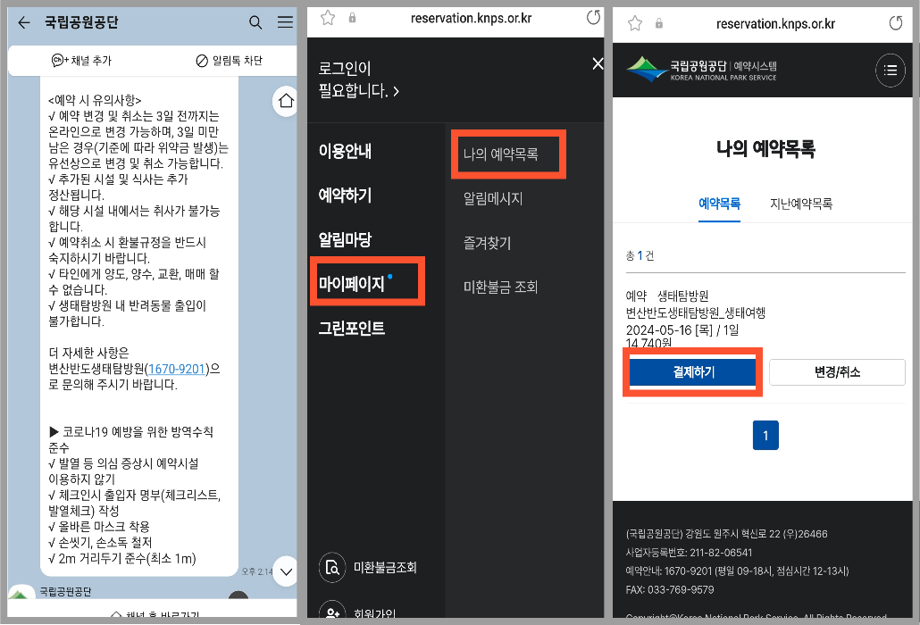 변산반도 생태탐방로 모바일 예약하기