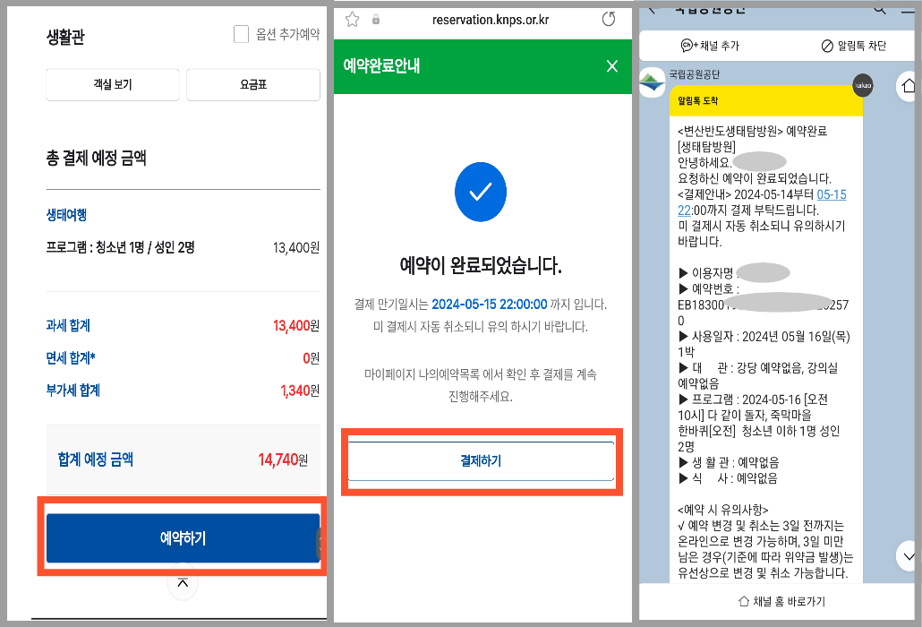 8. 금액을 확인 후 결제는 진행하지 않고 '예약하기' 버튼으로 종료를 합니다.