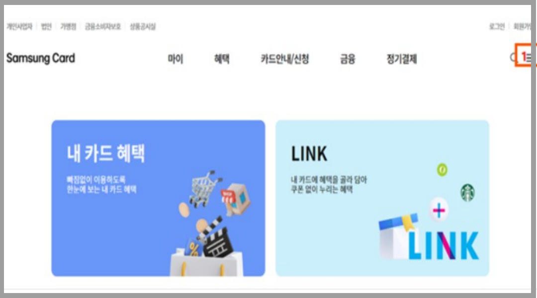 1. 다음의 삼성카드 홈페이지에 쉽고 빠르게 접속합니다.