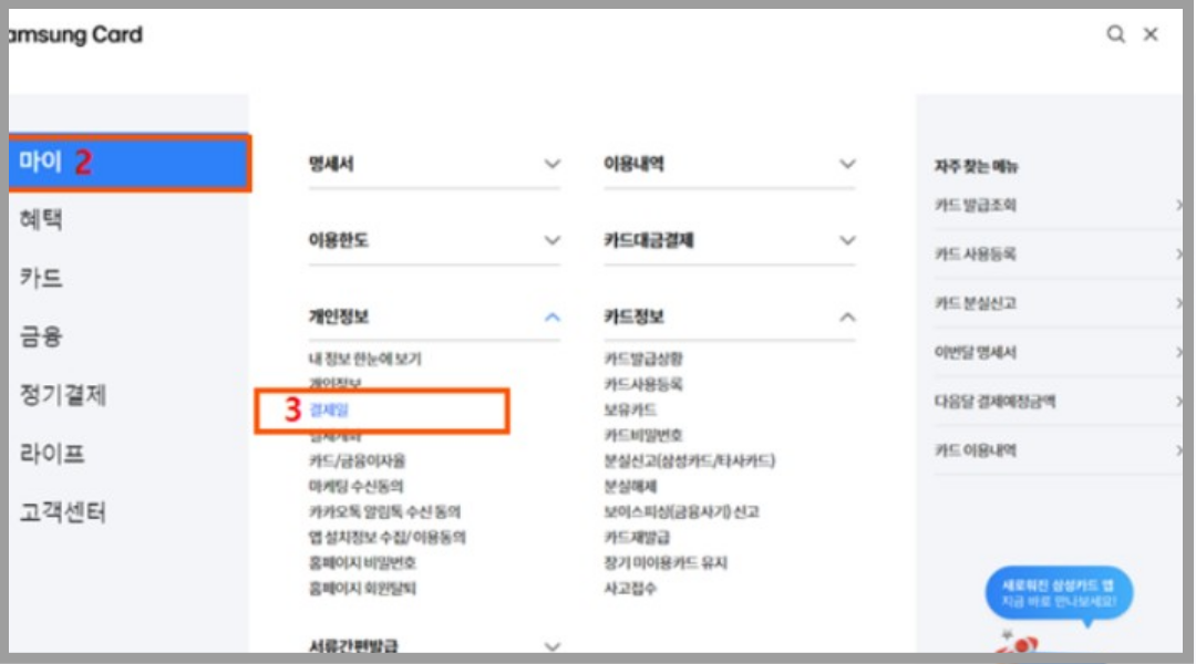 삼성 카드의 결제일 변경은 홈페이지에서 쉽게 하실수 있습니다.