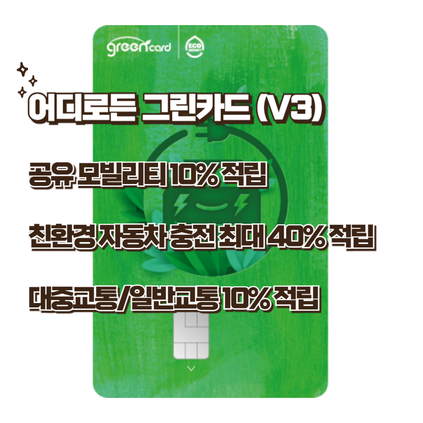 그린카드(V3)는 전기차 및 수소차 충전 시 최대 40%의 포인트 적립 혜택을 제공합니다.