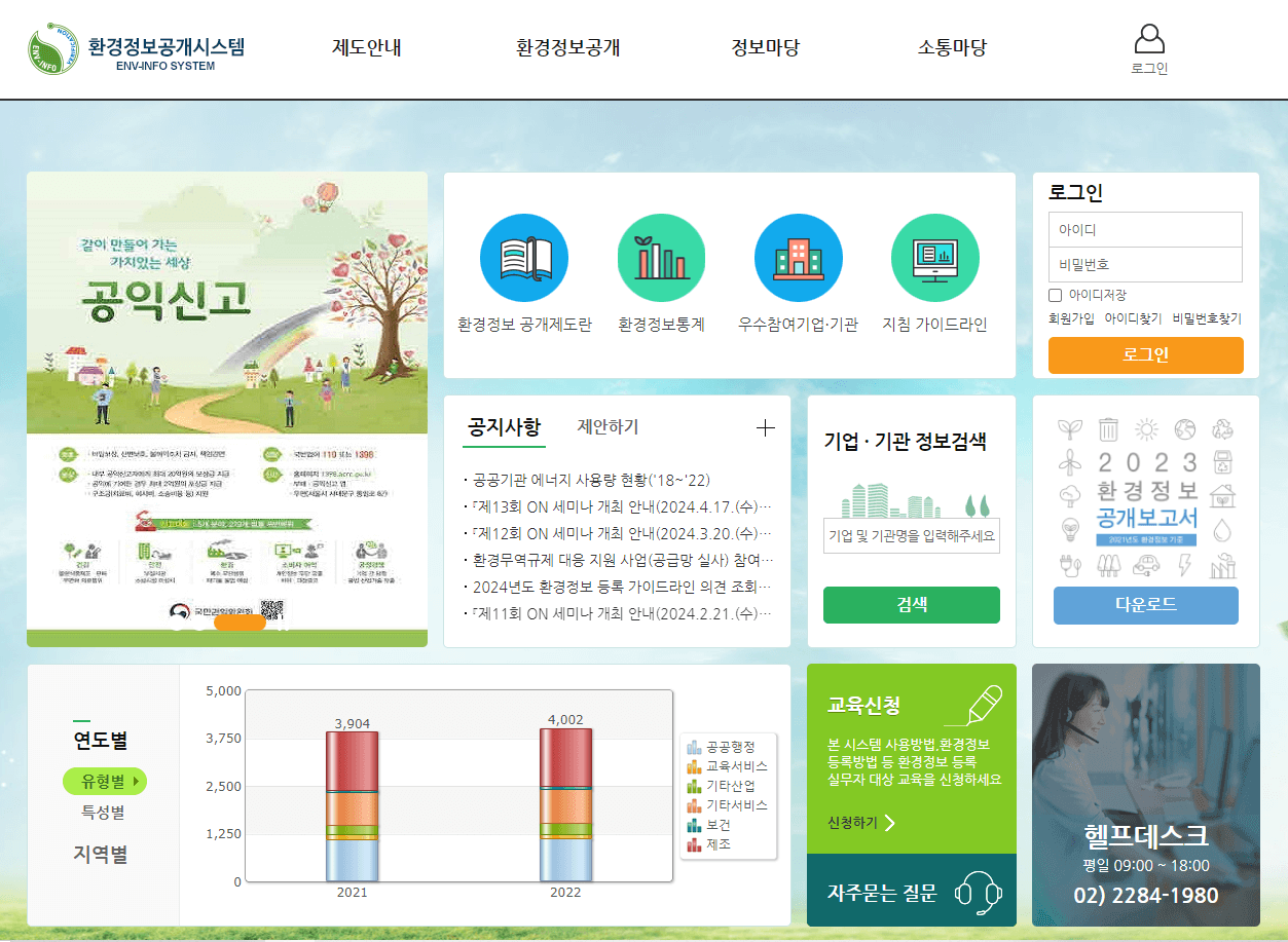 이 제도는 기업이나 기관들의 환경오염물질의 배출 및 사용량, 환경관리 상태, 환경법 위반 상태 등을 대중에게 공개하는 제도입니다. 즉 기업이나 기관이 배출하거나 사용하는 환경오염물질의 종류와 양을 확인할 수 있어 기업이나 기관의 환경경영에 관한 전반적인 현황과 노력을 알 수 있습니다. 더 나아가 환경 관련 법규를 위반한 기록이 있는지도 확인할 수 있습니다. 이를 직접 확인하기 위해선 환경정보공개시스템에 접속한 수 회원가입 절차를 거쳐 로그인을 합니다. 그런 다음 다양한 환경정보와 통계, 환경경영 정책 지원 정보 등을 검색하고 확인할 수 있습니다. 또한 환경정보공개 대상 기관이라면 여기서 사업장 등록 및 환경정보를 입력해야 합니다. 이 제도의 목적은 환경경영에 대한 기업의 자발적 추진 의지를 높이고 환경소통을 활성화하여 환경경영 기반 조성 및 환경관리체계 구축에 기여하는 것입니다. 국내에서는 2011년에 도입되어 2013년 처음으로 전국 1,047개 기관의 환경정보가 공개되었습니다. 이 제도는 기업과 기관이 매년 환경정보를 등록하고 검증받으며 현재 1,800여 개 이상의 기업 및 기관이 환경정보 공개에 참여하고 있습니다. 이 제도는 환경기술 및 환경산업 지원법에 근거를 두고 있으며 이를 통해 환경 관련 정보의 투명한 공개를 통해 환경 보호 및 관리에 대한 사회적 관심을 높이고 기업의 환경경영을 촉진하려는 목적을 가지고 있습니다. 이러한 이 제도는 환경보호와 지속 가능한 발전을 위한 중요한 도구로 기업과 기관이 환경에 미치는 영향을 투명하게 공개함으로써 환경 보호에 대한 공공의 인식을 높이고 환경 친화적인 경영 활동을 장려하는 데 기여하고 있습니다. 이 제도는 환경 보호와 지속 가능한 발전을 위한 중요한 도구로서 기업과 기관이 환경에 미치는 영향을 투명하게 공개함으로써 환경 보호에 대한 공공의 인식을 높이고 환경 친화적인 경영 활동을 장려하는 데 기여합니다. 이 제도를 통해 환경정보의 투명한 공개와 환경경영의 자발적 추진이 활성화되어 환경 보호와 지속 가능한 발전을 위한 사회적 기반을 강화할 수 있습니다.