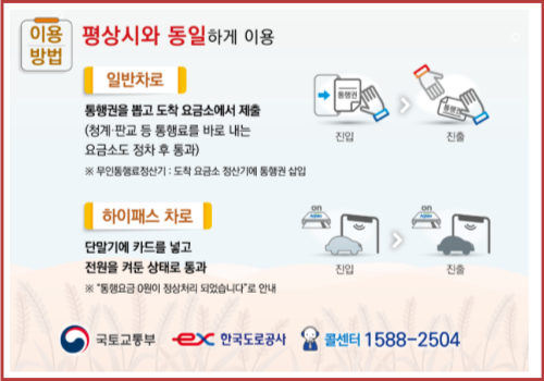 - 9월 18일 이전에 고속도로에 진입하여 18일 자정을 넘겨 빠져나오면 통행료가 면제됩니다.