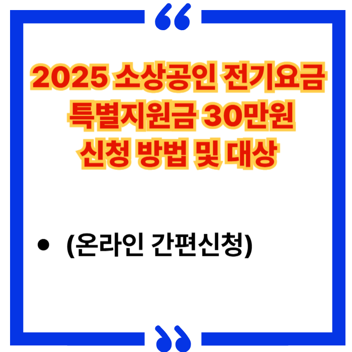 2025년 하반기, 고금리와 전기요금 인상으로 힘든 소상공인 사장님들을 위한 전기요금 특별지원금 30만원 지원이 시작됩니다. 내가 지원 대상에 해당하는지 자가진단하고, 복잡한 서류 없이 온라인으로 5분 만에 간편 신청하는 방법을 총정리했습니다. 신청 기간 놓치지 마세요!