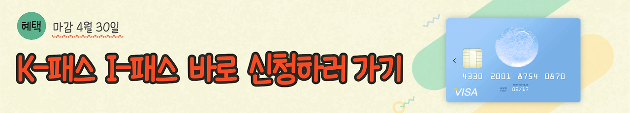 인천 시민 이라면 "K-패스" 신규 가입 또는 전환 시 교통비를 16회 이용시 부터 무제한으로 환급 받는 혜택을 누릴 수 있습니다. 월 15회 이상 대중교통을 이용하는 고객이라면, 월16회 이용 부터는 무제한 공짜인 것입니다. 정부와 인천시가 5월1일 부터 시행하는 "K-패스" 와 "I-패스" 혜택을 적용받기 위해서는 4월 30일까지 전환 또는 회원 가입 절차를 반드시 완료해야 할인 혜택을 받을수 있으니 서두르시길 바랍니다.