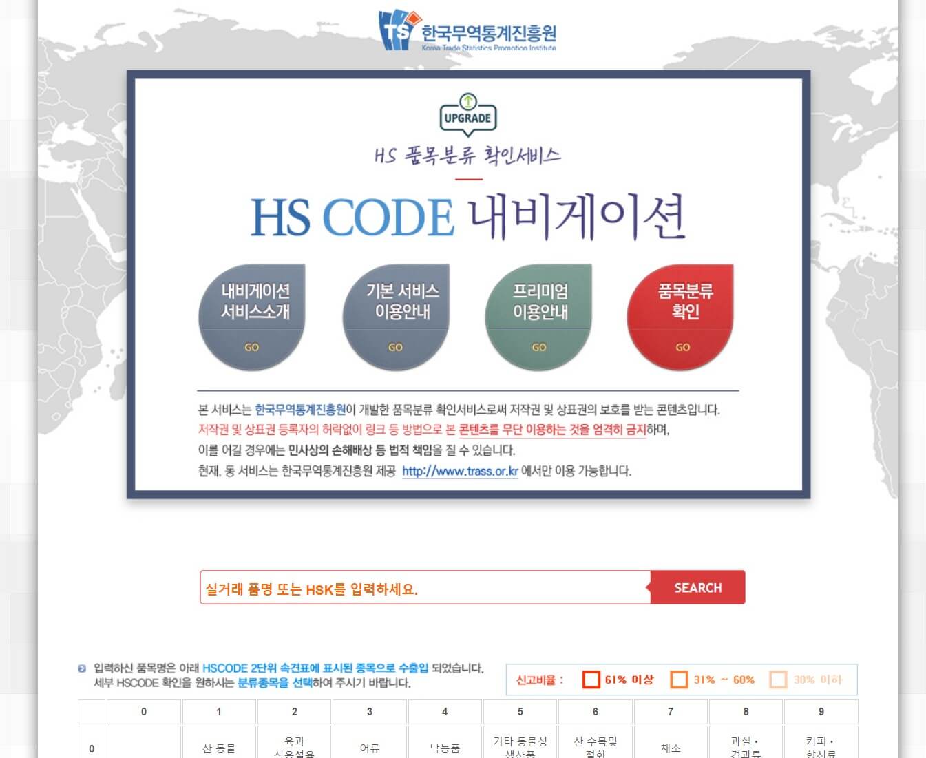2. HS CODE내비게이션 메인 화면 입니다.